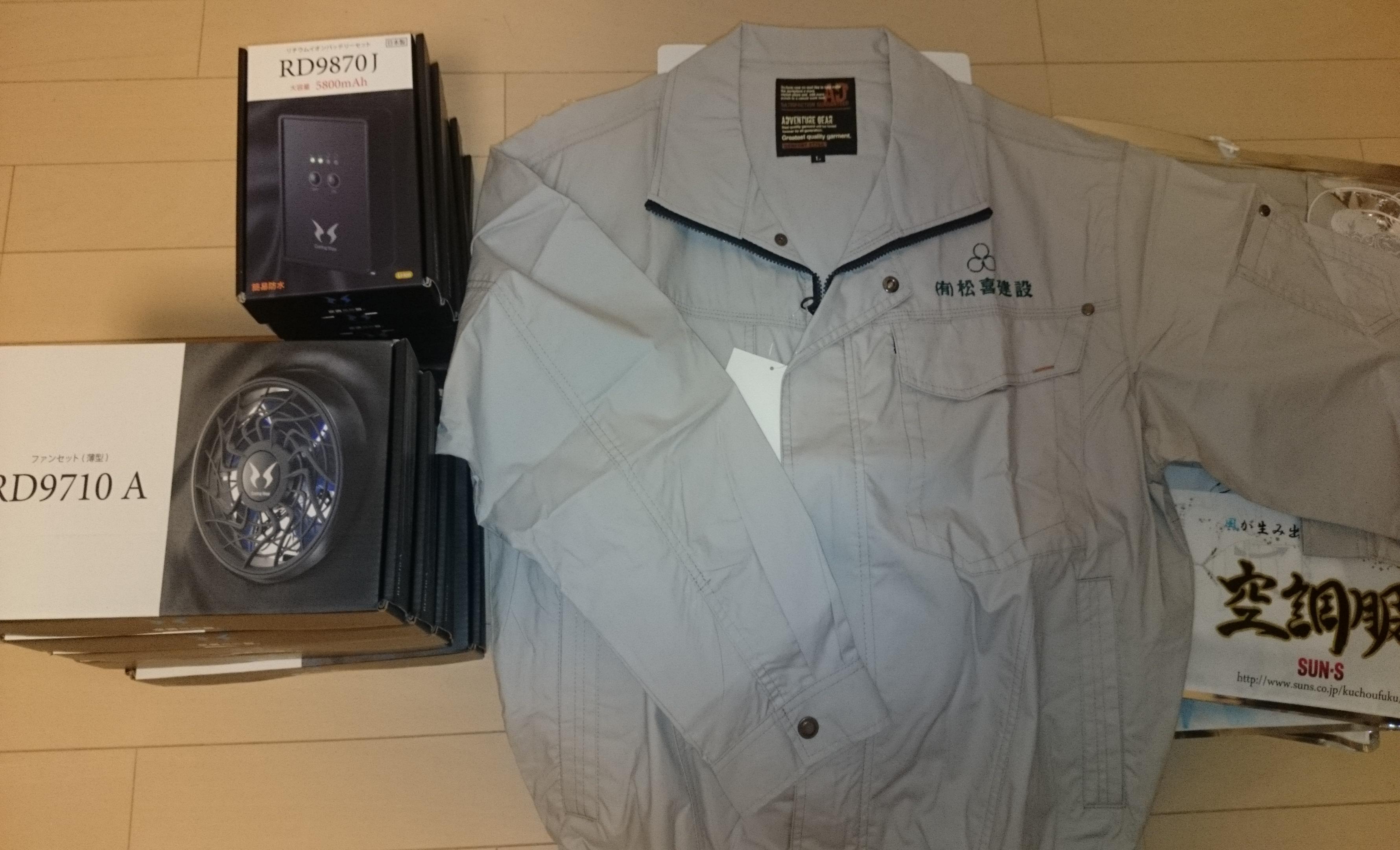 去年の夏、自分は空調服を初めて購入し、着用して作業しました。 超涼しいー!って感じのものではありませんが、確かに疲労度は軽減される事を体感しました。 来年はみんなに支給してあげたいな~と思い、今年の目標の一つに設定。 で、今年全員に支給。社名の刺繍を入れて。